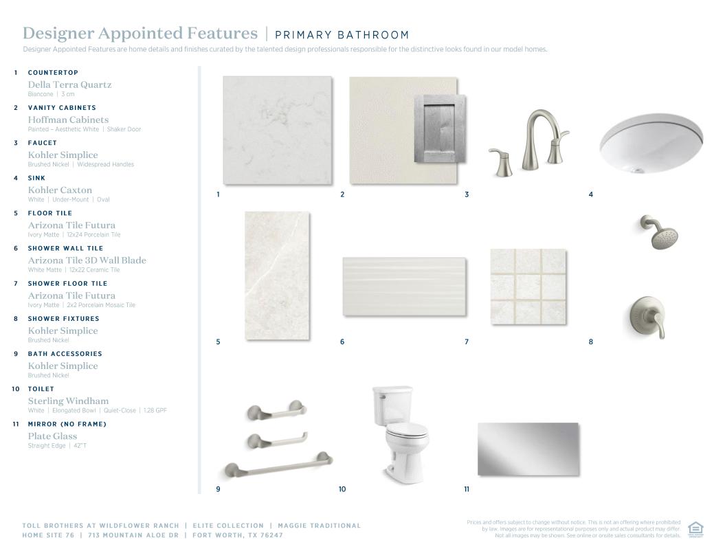 Toll Brothers Designer Appointed Collections are professionally curated selections of fixtures and finishes that come together to create a cohesive, distinctive look for a home. Learn More