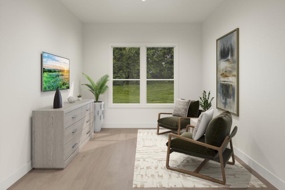 The Chappell Hill offers a harmonious blend of comfort, style, and functionality in a thoughtfully designed layout. A welcoming foyer opens to an expansive main living area, where the great room with an elegant tray ceiling flows into the kitchen and casual dining space. The kitchen includes a center island and a walk-in pantry, making it perfect for both everyday living and entertaining. Just off the great room, a covered patio extends the living space outdoors. A versatile flex room and dedicated office offer flexible options to suit your lifestyle. The private primary suite features a tray ceiling, a spacious walk-in closet, and a spa-inspired bath with dual vanities, a soaking tub, a separate shower, and a private water closet. Two secondary bedrooms share a full hall bath, while a centrally located laundry room and everyday entry add convenience throughout the home.