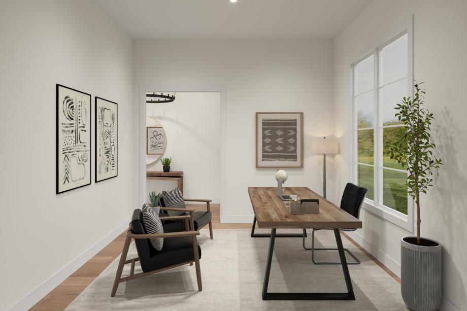 The Llano offers a stylish and open layout designed for modern living. A tray-ceiling foyer welcomes you into the heart of the home, where a beautiful casual dining area, a well-equipped kitchen, and a dramatic two-story great room come together for seamless gathering and relaxation. The kitchen includes a center island and a walk-in pantry—perfect for both everyday meals and entertaining. Just beyond, a covered patio extends the living space outdoors. The main-floor primary suite features a tray ceiling, dual walk-in closets, and a spa-inspired bath with a dual-sink vanity, soaking tub, separate shower, and private water closet. Upstairs, two secondary bedrooms share a full hall bath and are complemented by a central loft overlooking the great room. Additional highlights include a first-floor laundry area, powder room, everyday entry, and a dedicated office.