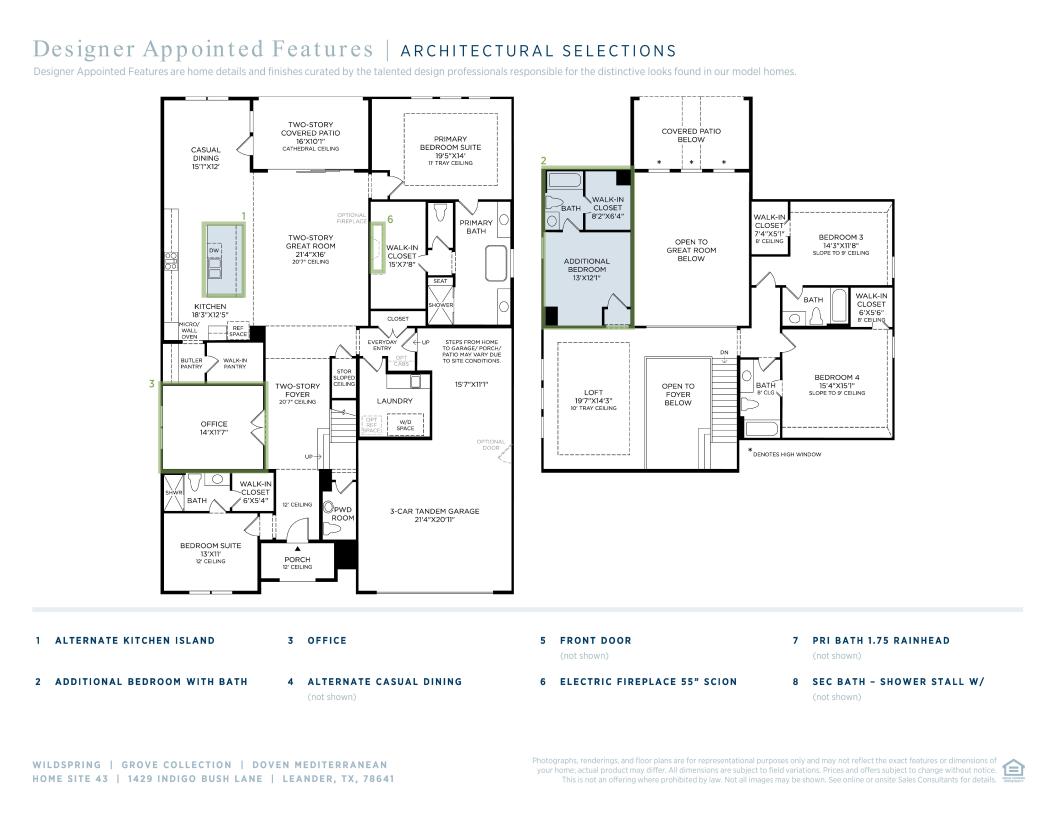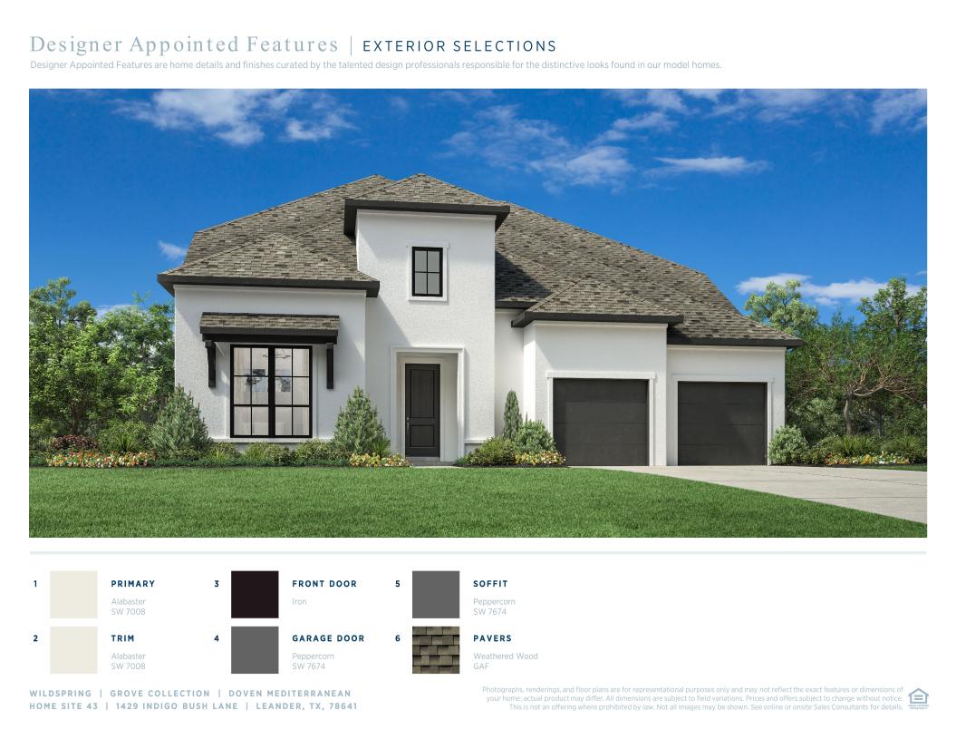 Elegantly designed for the everyday and the extraordinary, the Doven greets you with an airy two-story foyer that opens onto the lovely formal dining room and palatial two-story great room with two-story covered patio, both with charming cathedral ceilings. The well-designed kitchen is central to a spacious casual dining area, and is enhanced by large center island with breakfast bar, plenty of counter and cabinet space, an ample walk-in pantry, and a butler pantry connecting to the dining room. Defining the elegant primary bedroom suite are a beautiful tray ceiling, an impressive walk-in closet, and a deluxe primary bath with dual vanities, a large soaking tub, a luxe shower with seat, and a private water closet. Central to a generous loft with tray ceiling, secondary bedrooms, one with private bath, the other with shared hall bath, feature walk-in closets. Additional highlights include a desirable first-floor bedroom with walk-in closet and private bath, a secluded office, an easily-accessible laundry, a convenient powder room and everyday entry, and ample additional storage.
