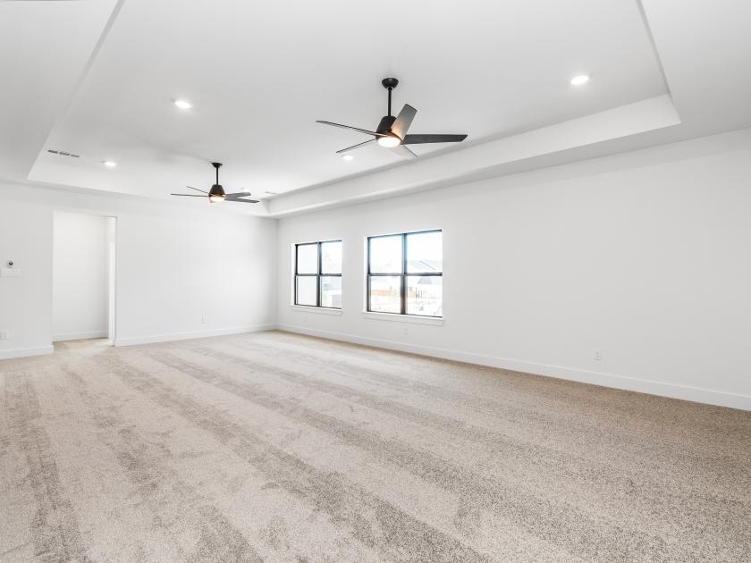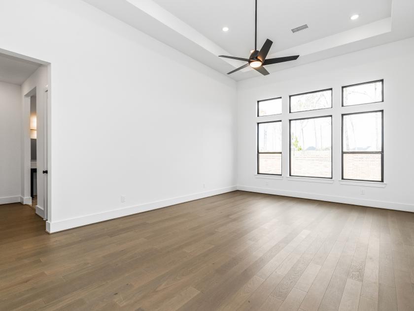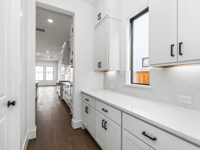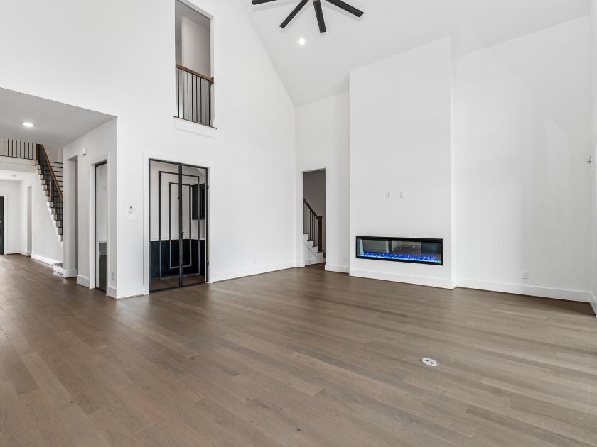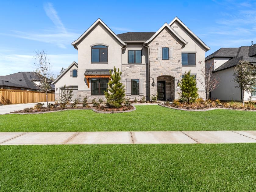 The Ashby offers an upgraded, luxurious living experience. Its inviting covered entry, featuring a pivot iron front door, leads into the grand two-story foyer and dining room, flowing seamlessly into the expansive two-story great room with views of the expanded covered porch and a desirable 15x8 Multi Slide Stacked Door (Black) connecting to the outdoor space. The thoughtfully designed gourmet kitchen is expanded to include more counter and cabinet space, a large center island with a breakfast bar, a massive walk-in pantry, and a Butler's Pantry, offering ample space for preparing and serving meals. The breakfast room is also expanded, allowing for a bright and airy casual dining experience. The private primary bedroom suite is grand, with a tray ceiling and ample space, while the deluxe primary bath is enhanced with a luxury package, including dual vanities, a large soaking tub, a luxe shower with seating, and a private water closet. A grand walk-in closet completes this luxurious suite. Upstairs, the large loft is central to three secondary bedrooms, each with walk-in closets. Two bedrooms share a bath with separate vanity areas, while the third features easy access to a shared hall bath. The home also features an additional bath and powder room for added convenience. Additional highlights include a wine room for wine enthusiasts, a Mud Bench (6 feet) by the everyday entry for easy organization, and abundant storage throughout the home. A desirable first-floor bedroom suite with its own private bath, a spacious flex room, and a versatile office complete the space, offering flexibility for any lifestyle.