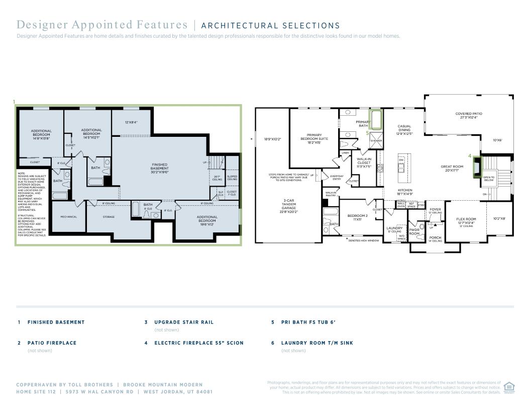 The Brooke offers a wonderful blend of beautiful indoor and outdoor living. Upon entering the inviting foyer, visitors are drawn into the airy open-concept living area and a spacious covered patio beyond. The great room seamlessly flows into a bright casual dining area and a gourmet kitchen featuring a center island with breakfast bar plus plentiful counter and cabinet space. The primary bedroom is a true retreat featuring a walk-in closet and a tranquil bath with dual vanities, a relaxing soaking tub, a luxe shower, and a private water closet. A lovely secondary bedroom features a desirable private bath. The unfinished basement provides generous storage space and versatile living and entertaining opportunities. Other highlights include a flex room off the great room, dedicated laundry space, a powder room, and extra storage throughout.