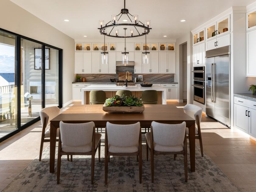 Chef's kitchens with large center islands and casual dining rooms