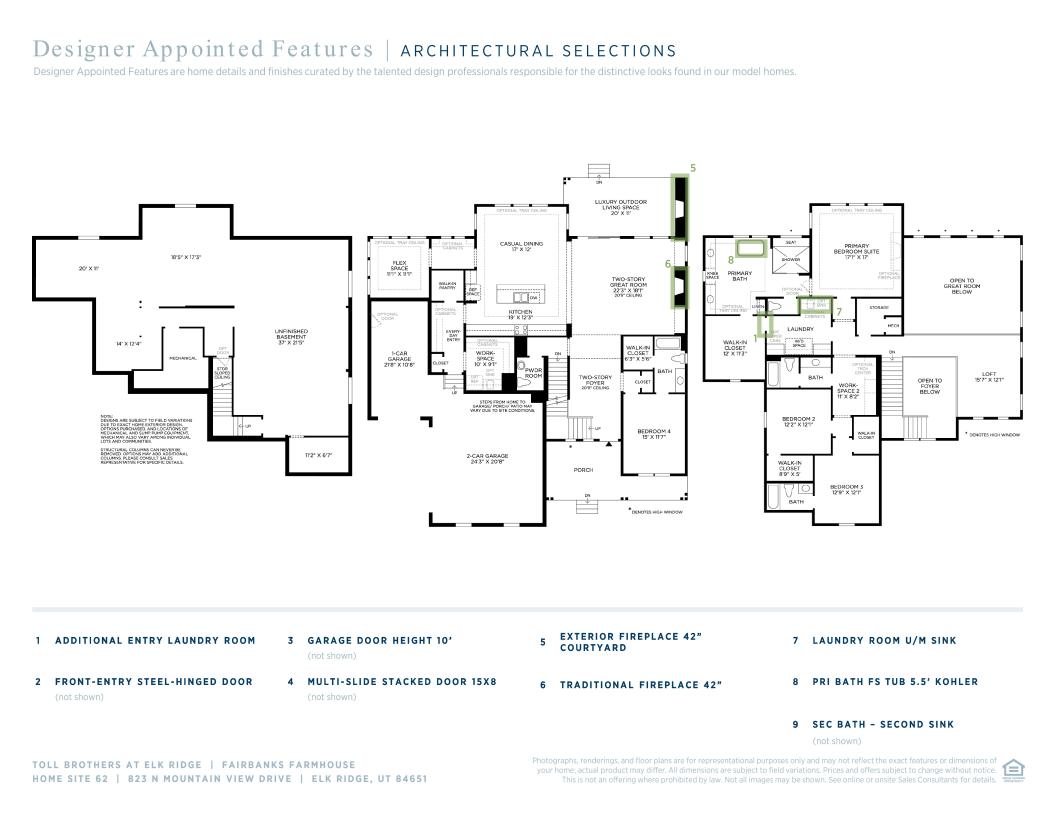 Deluxe modern design. The Fairbanks' welcoming stepped covered entry flows into the two-story foyer, with views of the two-story great room and desirable luxury outdoor living space beyond. The well-equipped kitchen overlooks a bright formal dining room, and is enhanced by a large center island with breakfast bar, ample counter and cabinet space, and sizable walk-in pantry. The stunning primary bedroom suite is enhanced by an enormous walk-in closet and deluxe primary bath with dual vanities, large soaking tub, luxe glass-enclosed shower with seat, linen storage, and private water closet. Spacious secondary bedrooms feature roomy walk-in closets, one with private full bath, the other with shared full hall bath with separate vanity area. Additional highlights include a generous second floor loft; versatile flex space off the dining room; convenient powder room, everyday entry, and drop zone off the foyer; centrally located laundry; and additional storage.