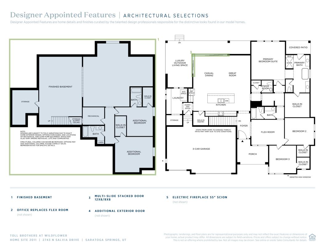 Deluxe family lifestyle. The Evans' inviting covered entry with stepped landing reveals the welcoming foyer and views of the soaring great room, dining room, and desirable wraparound luxury outdoor living space beyond. The well-designed kitchen is equipped with a large center island with breakfast bar, plenty of counter and cabinet space, and generous walk-in pantry. The stunning primary bedroom suite is complete with a private covered patio, huge walk-in closet, and deluxe primary bath with dual vanities, large soaking tub, luxe glass-enclosed shower, and private water closet. Central to a bright flex space, secondary bedrooms feature walk-in closets and shared full hall bath. Additional highlights include centrally located laundry and additional storage throughout.