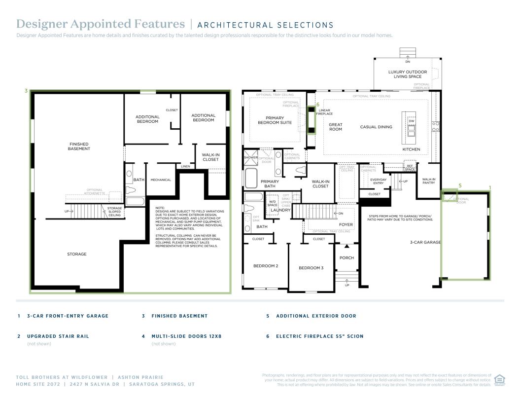 Modern family appointments. The Ashton's welcoming stepped covered entry flows into the inviting foyer, revealing views of the spacious great room, dining room, and desirable luxury outdoor living space beyond. The well-designed kitchen is equipped with a large center island with breakfast bar, plenty of counter and cabinet space, and sizable walk-in pantry. The bright primary bedroom suite is enhanced by a generous walk-in closet and deluxe primary bath with dual-sink vanity, large soaking tub, luxe glass-enclosed shower, and private water closet. Spacious secondary bedrooms feature ample closets and shared full hall bath. Additional highlights include a centrally located laundry, and additional storage throughout.