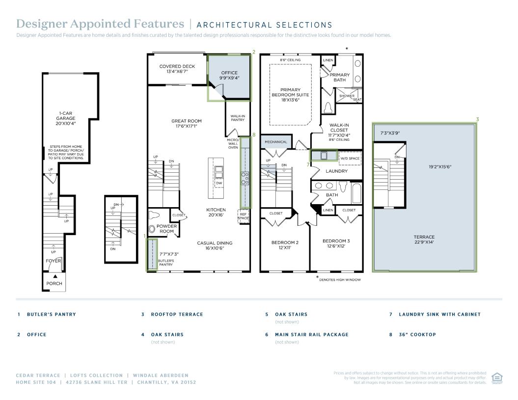 The Windale offers elevated living across multiple levels with thoughtful spaces designed for both comfort and versatility. A comforting foyer brings you to the third floor and welcomes you with an open-concept layout that includes a cozy great room, well-appointed kitchen with a center island and walk-in pantry, and a casual dining area. A powder room adds convenience, while a nearby flex room and a covered deck extend the living and entertaining space. Upstairs on the fourth floor, the private primary suite features a walk-in closet and a luxe bath with dual-sink vanity, shower with seat, linen closet, and private water closet. Two secondary bedrooms share a hall bath, and a centrally located laundry room provides added convenience. The fifth floor completes the design with both finished and unfinished terrace spaces—ideal for outdoor living or future customization.