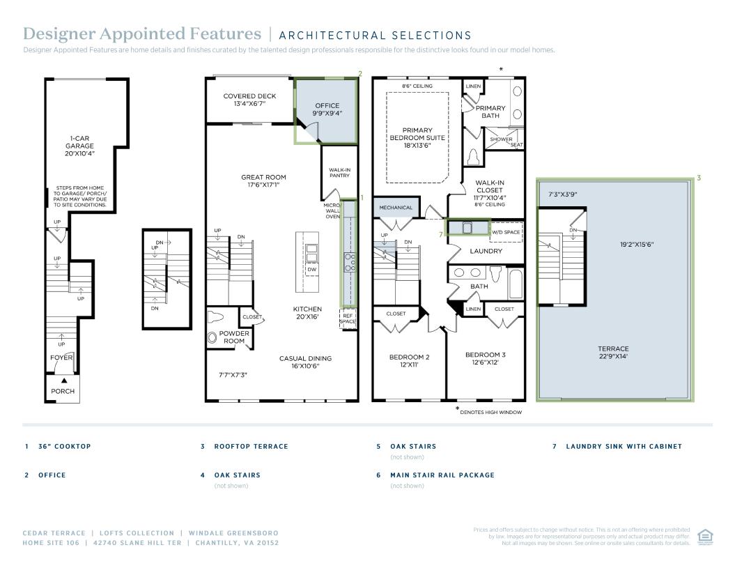 The Windale offers elevated living across multiple levels with thoughtful spaces designed for both comfort and versatility. A comforting foyer brings you to the third floor and welcomes you with an open-concept layout that includes a cozy great room, well-appointed kitchen with a center island and walk-in pantry, and a casual dining area. A powder room adds convenience, while a nearby flex room and a covered deck extend the living and entertaining space. Upstairs on the fourth floor, the private primary suite features a walk-in closet and a luxe bath with dual-sink vanity, shower with seat, linen closet, and private water closet. Two secondary bedrooms share a hall bath, and a centrally located laundry room provides added convenience. The fifth floor completes the design with both finished and unfinished terrace spaces—ideal for outdoor living or future customization.