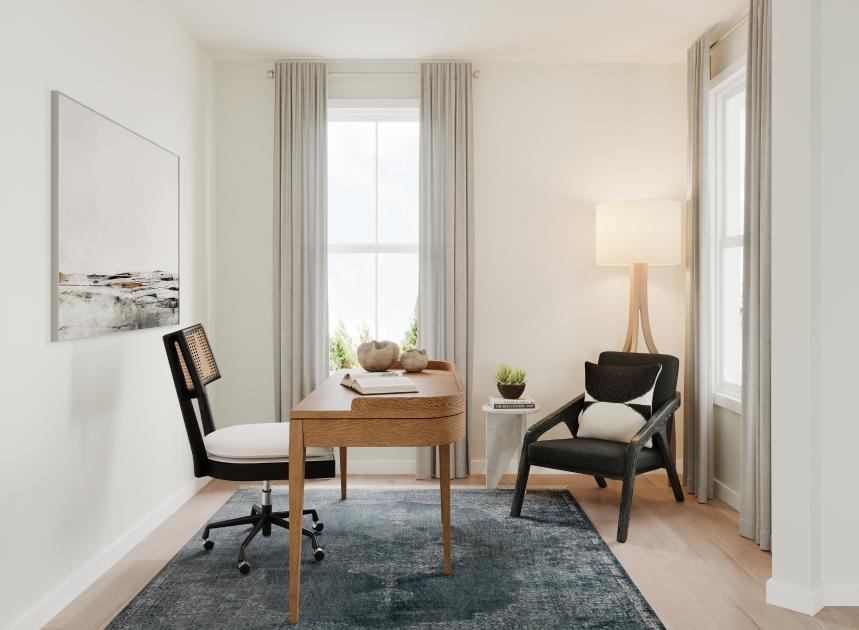 The Windale offers elevated living across multiple levels with thoughtful spaces designed for both comfort and versatility. A comforting foyer brings you to the third floor and welcomes you with an open-concept layout that includes a cozy great room, well-appointed kitchen with a center island and walk-in pantry, and a casual dining area. A powder room adds convenience, while a nearby flex room and a covered deck extend the living and entertaining space. Upstairs on the fourth floor, the private primary suite features a walk-in closet and a luxe bath with dual-sink vanity, shower with seat, linen closet, and private water closet. Two secondary bedrooms share a hall bath, and a centrally located laundry room provides added convenience. The fifth floor completes the design with both finished and unfinished terrace spaces—ideal for outdoor living or future customization.