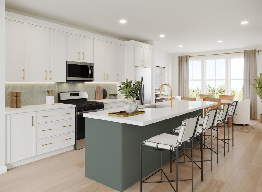 This elegant four-story home blends sophisticated design with everyday functionality. A welcoming foyer opens to a secondary bedroom with a private bath, providing an ideal space for guests or extended stays. The second level serves as the heart of the home, where a spacious great room flows effortlessly into the kitchen and casual dining area. The gourmet kitchen features a center island and pantry, making it a central hub for both daily routines and entertaining. A powder room on this level adds convenience. On the third floor, the primary suite offers a private retreat with a generous walk-in closet and a spa-inspired bath that includes a dual-sink vanity, a shower with seat, and a private water closet. Another secondary bedroom on this level includes its own private bath and walk-in closet. A conveniently located laundry room completes the third floor. The fourth level features a spacious loft with a powder room and additional storage. This flexible space is perfect for a home office, game room, or lounge.