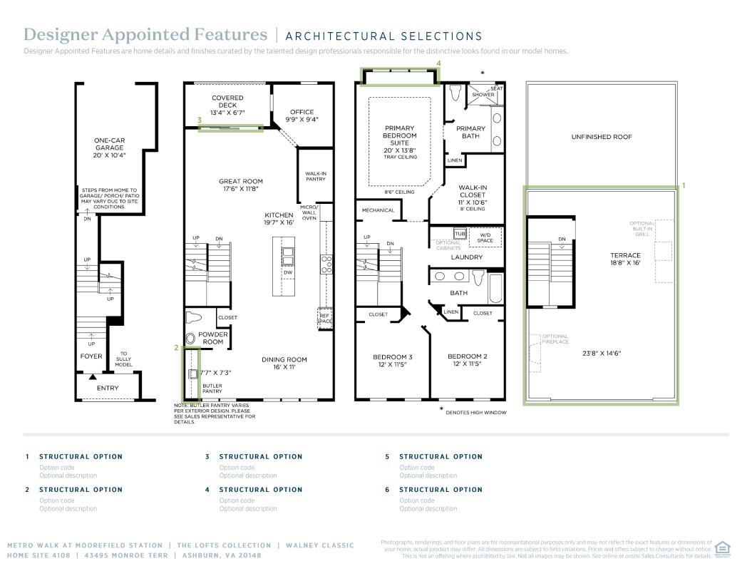 Deluxe contemporary townhome touches. The Walney's welcoming covered entry and foyer lead up the elegant stairs to the bright living level. Central to the spacious great room, covered deck, and dining room, the well-designed kitchen is equipped with a large center island with breakfast bar, plenty of counter and cabinet space, and huge walk-in pantry. On the bedroom level, the marvelous primary bedroom suite is highlighted by a stunning tray ceiling, massive walk-in closet, and spa-like primary bath with dual-sink vanity, luxe glass-enclosed shower with seat, linen storage, and private water closet. Sizable secondary bedrooms feature generous closets and shared full hall bath with dual-sink vanity and linen storage. Additional highlights include a versatile office and convenient powder room on the living level; centrally located laundry on the bedroom level; and additional storage throughout.