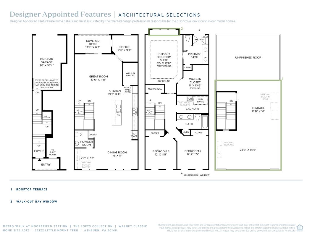Deluxe contemporary townhome touches. The Walney's welcoming covered entry and foyer lead up the elegant stairs to the bright living level. Central to the spacious great room, covered deck, and dining room, the well-designed kitchen is equipped with a large center island with breakfast bar, plenty of counter and cabinet space, and huge walk-in pantry. On the bedroom level, the marvelous primary bedroom suite is highlighted by a stunning tray ceiling, massive walk-in closet, and spa-like primary bath with dual-sink vanity, luxe glass-enclosed shower with seat, linen storage, and private water closet. Sizable secondary bedrooms feature generous closets and shared full hall bath with dual-sink vanity and linen storage. Additional highlights include a versatile office and convenient powder room on the living level; centrally located laundry on the bedroom level; and additional storage throughout.