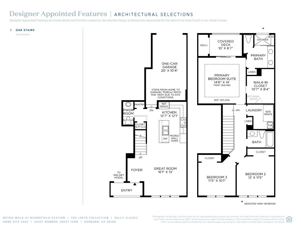 Urban design, deluxe style. The Sully's inviting covered entry and welcoming foyer reveal the charming stairs and spacious great room. The well-equipped kitchen is complete with a large center island with breakfast bar, plenty of counter and cabinet space, and sizable pantry. The sophisticated primary bedroom suite is enhanced by an elegant tray ceiling, huge walk-in closet, and spa-like primary bath with dual-sink vanity, luxe glass-enclosed shower with seat, linen storage, and private water closet. Ample secondary bedrooms feature roomy closets and shared full hall bath. Additional highlights include a convenient powder room, centrally located laundry, and additional storage.