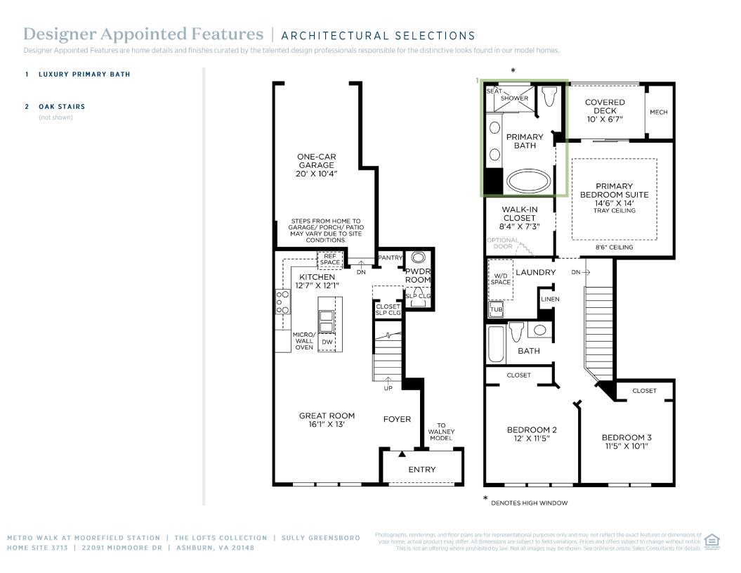 Urban design, deluxe style. The Sully's inviting covered entry and welcoming foyer reveal the charming stairs and spacious great room. The well-equipped kitchen is complete with a large center island with breakfast bar, plenty of counter and cabinet space, and sizable pantry. The sophisticated primary bedroom suite is enhanced by an elegant tray ceiling, huge walk-in closet, and spa-like primary bath with dual-sink vanity, luxe glass-enclosed shower with seat, linen storage, and private water closet. Ample secondary bedrooms feature roomy closets and shared full hall bath. Additional highlights include a convenient powder room, centrally located laundry, and additional storage.