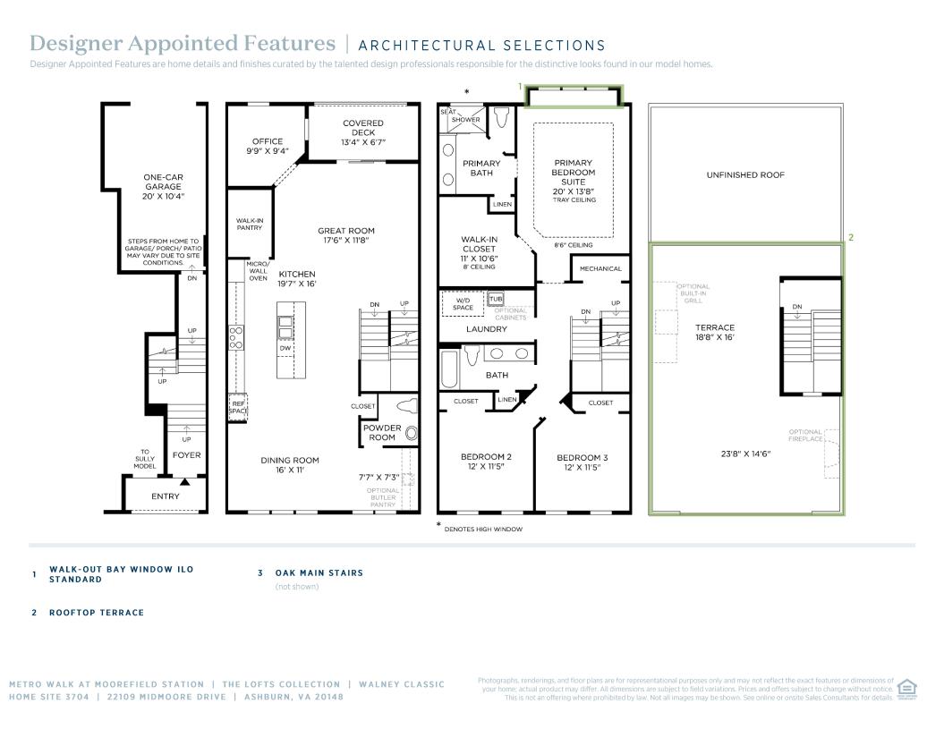 Deluxe contemporary townhome touches. The Walney's welcoming covered entry and foyer lead up the elegant stairs to the bright living level. Central to the spacious great room, covered deck, and dining room, the well-designed kitchen is equipped with a large center island with breakfast bar, plenty of counter and cabinet space, and huge walk-in pantry. On the bedroom level, the marvelous primary bedroom suite is highlighted by a stunning tray ceiling, massive walk-in closet, and spa-like primary bath with dual-sink vanity, luxe glass-enclosed shower with seat, linen storage, and private water closet. Sizable secondary bedrooms feature generous closets and shared full hall bath with dual-sink vanity and linen storage. Additional highlights include a versatile office and convenient powder room on the living level; centrally located laundry on the bedroom level; and additional storage throughout.