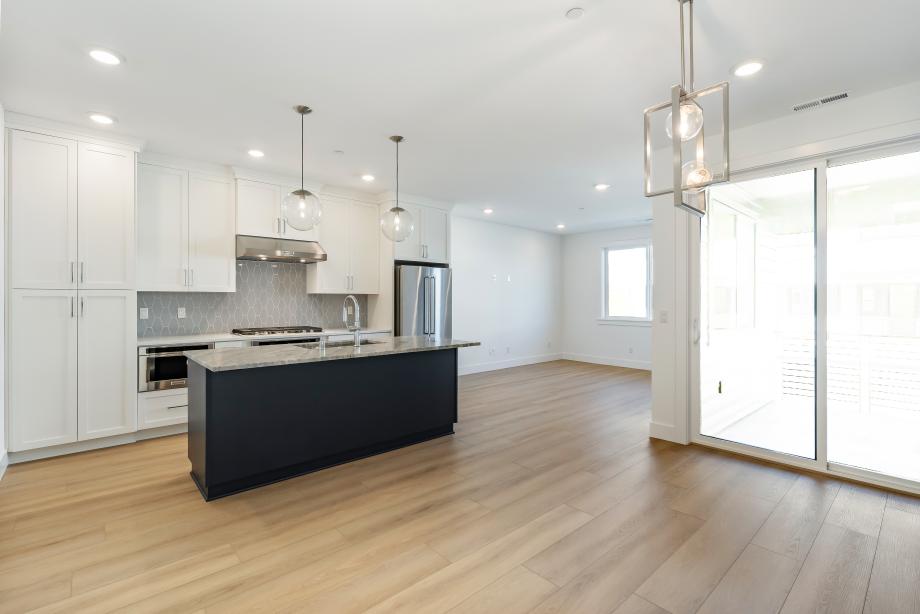 Modern luxury meets elegant design in this stunning home. The front door opens into an inviting foyer that leads to a light-filled great room, where expansive windows frame stunning views. The gourmet kitchen features two-toned shaker-style cabinets, KitchenAid appliances, quartz perimeter countertops, and an island with fantasy blue satin marble counters, complemented by a denim glossy hex backsplash. Sliding glass doors open to a covered patio, perfect for seamless indoor-outdoor living. A main-level bedroom offers flexibility for guests, with a full bath featuring light gray tile flooring and a glossy picket-tiled shower. Upstairs, the primary suite boasts a spa-like en-suite bathroom with dual vanities, quartz countertops, and a frameless glass shower adorned with cosmic white tiles and a glossy hex accent. The secondary bedrooms share a well-appointed bathroom with a quartz vanity and a fiberglass tub/shower insert. A laundry room with quartz countertops and a base cabinet with a sink adds convenience. The lower level features a spacious bonus area with carpet, offering versatility for entertainment or work, and direct access to a two-car garage. With luxury vinyl plank flooring in main living areas, soft-close cabinetry, and premium finishes throughout, this modern, thoughtfully designed home blends style and function seamlessly. Schedule an appointment today to learn more about this beautiful home.