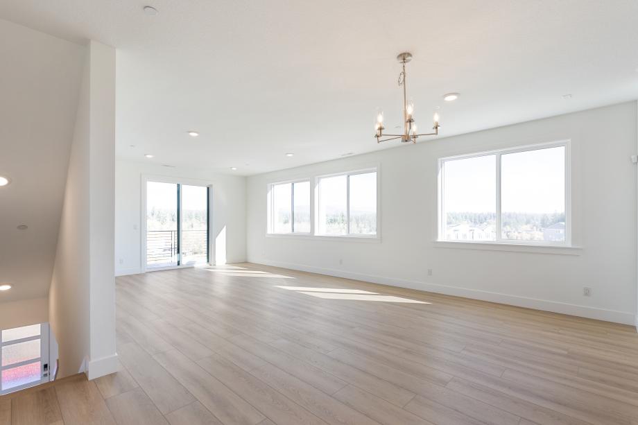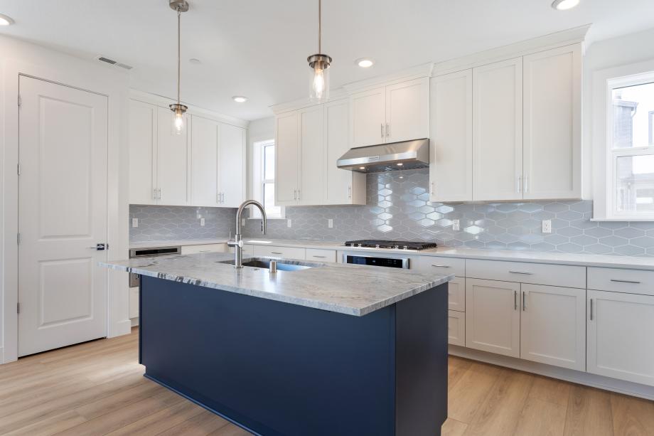 The Awbrey seamlessly blends sophistication and functionality in a thoughtfully designed end-unit floor plan. The entryway welcomes you into a versatile flex room, while the second floor opens to an expansive great room, a well-appointed kitchen, and a casual dining area—perfect for gathering and entertaining. A covered balcony on the main level further extends the living space outdoors, ideal for relaxation. The kitchen features two-toned shaker-style cabinetry, slab quartz perimeter countertops, a striking island with Dolomite counters, and a sleek denim glossy backsplash. Neutral luxury vinyl plank floors flow through the main living areas, while plush carpet adds warmth to the bedrooms and loft. The primary bedroom suite is a serene retreat with a spacious walk-in closet and spa-like bath, showcasing a frameless glass shower with glossy tile surround. Two additional bedrooms share a stylish bath with a dual-sink vanity, quartz countertops, and a fiberglass tub/shower insert. Thoughtfully designed for convenience, the home includes a two-car garage, a powder room, third-floor laundry, and ample storage throughout. Designer lighting, polished chrome fixtures, and prewired home technology complete this stunning residence. The Awbrey embodies contemporary elegance with refined finishes, making it a truly exceptional home. Schedule an appointment today to learn more about this stunning home.