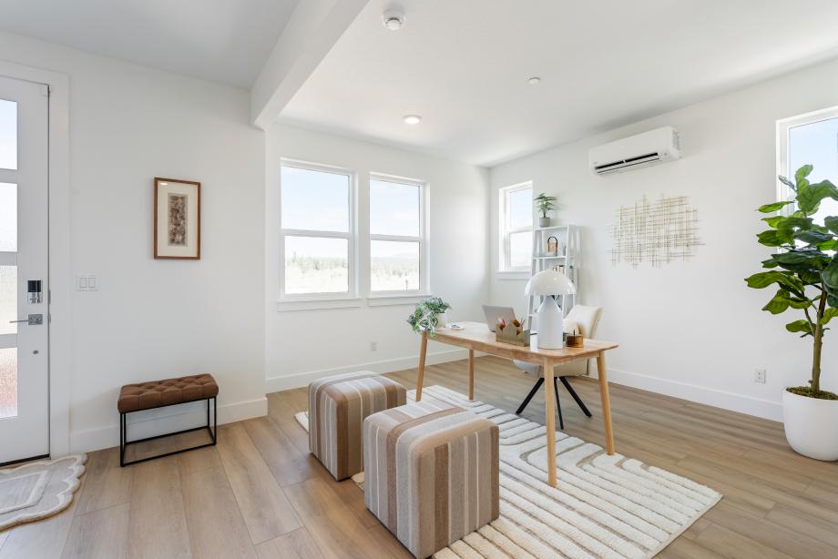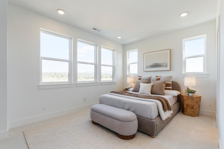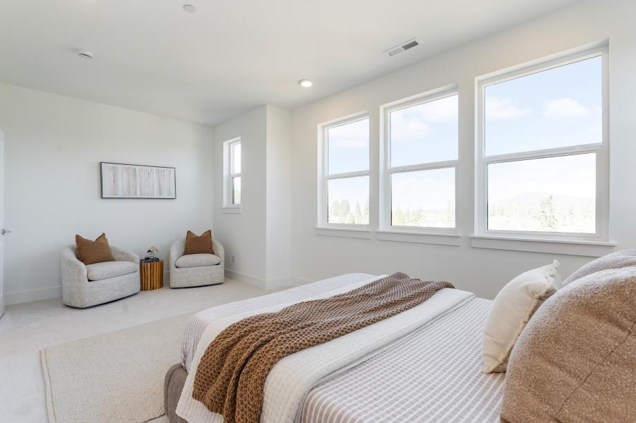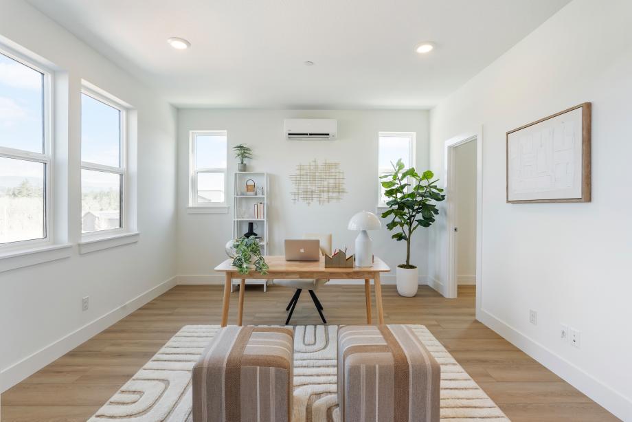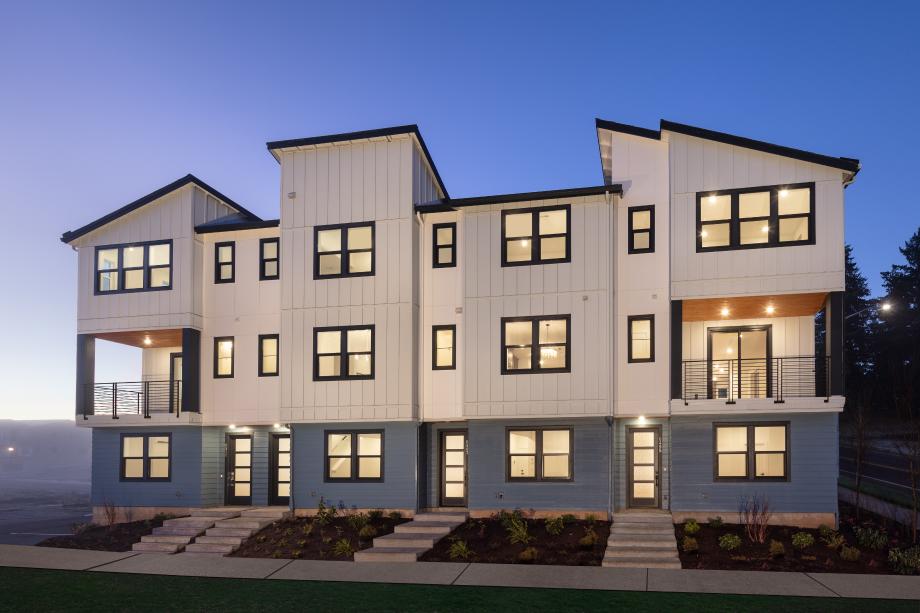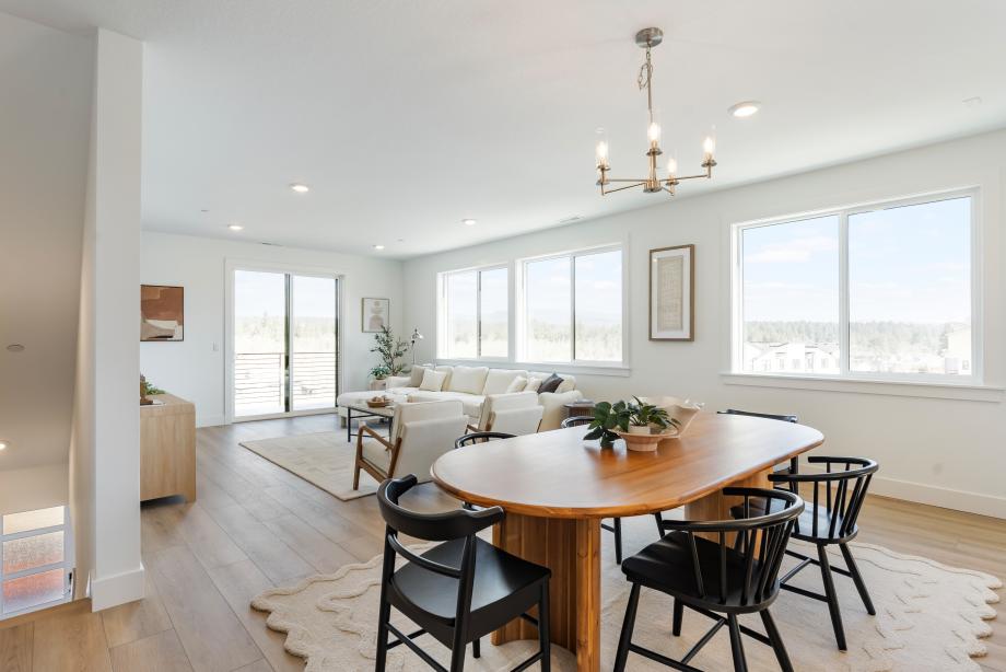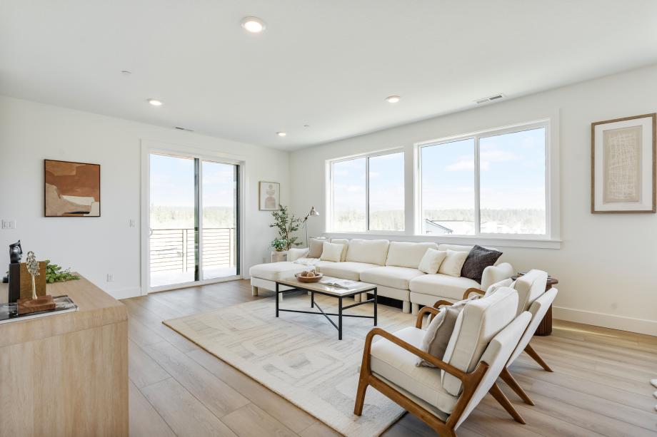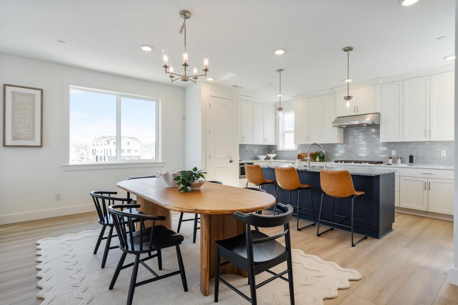 The Awbrey seamlessly blends sophistication and functionality in a thoughtfully designed end-unit floor plan. The entryway welcomes you into a versatile flex room, while the second floor opens to an expansive great room, a well-appointed kitchen, and a casual dining area—perfect for gathering and entertaining. A covered balcony on the main level further extends the living space outdoors, ideal for relaxation. The kitchen features two-toned shaker-style cabinetry, slab quartz perimeter countertops, a striking island with Dolomite counters, and a sleek denim glossy backsplash. Neutral luxury vinyl plank floors flow through the main living areas, while plush carpet adds warmth to the bedrooms and loft. The primary bedroom suite is a serene retreat with a spacious walk-in closet and spa-like bath, showcasing a frameless glass shower with glossy tile surround. Two additional bedrooms share a stylish bath with a dual-sink vanity, quartz countertops, and a fiberglass tub/shower insert. Thoughtfully designed for convenience, the home includes a two-car garage, a powder room, third-floor laundry, and ample storage throughout. Designer lighting, polished chrome fixtures, and prewired home technology complete this stunning residence. The Awbrey embodies contemporary elegance with refined finishes, making it a truly exceptional home. Schedule an appointment today to learn more about this stunning home.