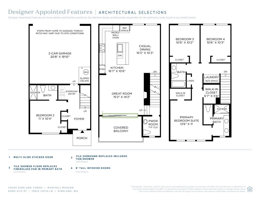 The Maryhill showcases a luxurious three-story floor plan that balances style and functionality. Walk into a charming foyer that leads up to the main living area, highlighted by a spacious great room with a cozy fireplace that overlooks a sizable covered balcony. The kitchen is expertly crafted, central to a casual dining area, and boasts ample counter and cabinet space as well as a large island with breakfast bar. Upstairs, the secluded primary bedroom suite is enhanced by dual walk-in closets and a spa-inspired private bath complete with a luxe shower, dual vanities, and a private water closet. Two secondary bedrooms feature roomy closets and a shared hall bath while an additional secondary bedroom can be found on the first floor, offering a private bath. Also highlighted in this home is a powder room conveniently located on the second floor, bedroom-level laundry, an everyday entry, and plenty of storage.