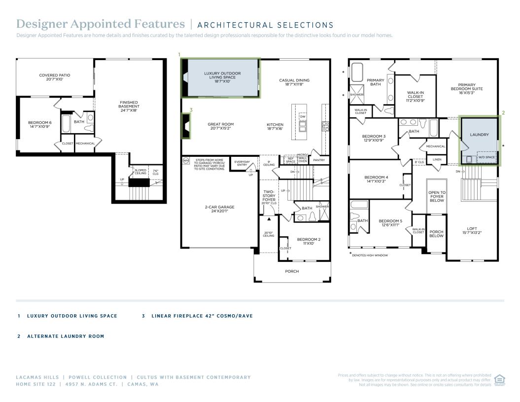 The Cultus with Basement is the perfect complement to every lifestyle with its beautiful blend of elegance and charm. A soaring two-story foyer reveals alluring views of the stunning great room and covered deck, central to a spacious casual dining area and the well-designed kitchen, enhanced by an oversized center island with breakfast bar, plenty of counter and cabinet space, and a roomy pantry. Secluded on the second floor, the superb primary bedroom suite is defined by a versatile workspace, an ample walk-in closet, and a marvelous primary bath with dual-sink vanity, a large soaking tub, luxe shower, and a private water closet. Secondary bedrooms, one with a private bath and two with a shared hall bath with dual-sink vanity, feature roomy closets and are central to a generous loft. The spacious finished basement features covered patio access and offers an additional bedroom with a closet and shared hall bath. Additional highlights include a desirable first-floor bedroom with closet and a shared hall bath off the foyer, easily accessible second-floor laundry, and additional storage throughout.