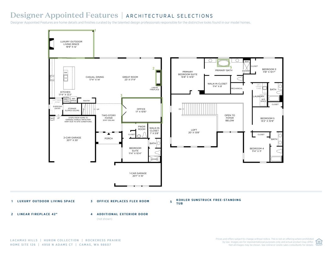 The Rockcress' inviting stepped covered porch and stunning two-story foyer open onto a bright flex room, and views to the spacious great room, casual dining area, and desirable covered patio beyond. The well-designed kitchen is complete with a large center island with breakfast bar, plenty of counter and cabinet space, and generous walk-in pantry. The marvelous primary bedroom suite is enhanced by a walk-in closet and luxe primary bath with separate vanities, large soaking tub, walk-in shower with seat, and private water closet. Central to an enormous loft, secondary bedrooms feature ample closets, one with private bath, two with shared bath with separate dual-sink vanity area. Additional highlights include a bedroom suite with walk-in closet and private bath off the foyer, convenient powder room and everyday entry, centrally located laundry, and additional storage.