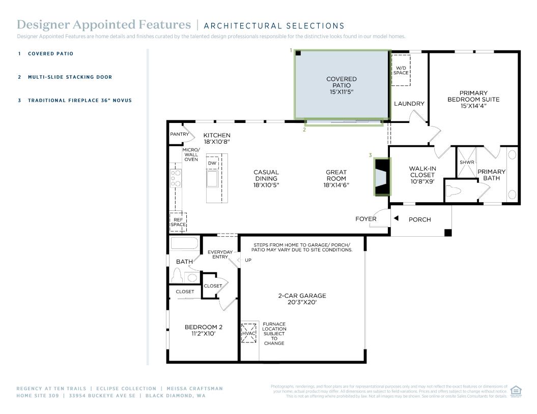 The Meissa pairs comfort with effortless flow across a thoughtfully open layout. From the welcoming foyer, the great room leads to the casual dining area and kitchen, where a center island and pantry make hosting and daily meals simple. Just beyond, a patio extends the living space outdoors—perfect for relaxing or gathering with friends. The private primary suite features a spacious walk-in closet and a bath with a dual-sink vanity, shower, and private water closet. A secondary bedroom near the everyday entry offers easy access to a full hall bath, making it ideal for family or overnight guests. A dedicated laundry area and generous storage add to the home's everyday ease.