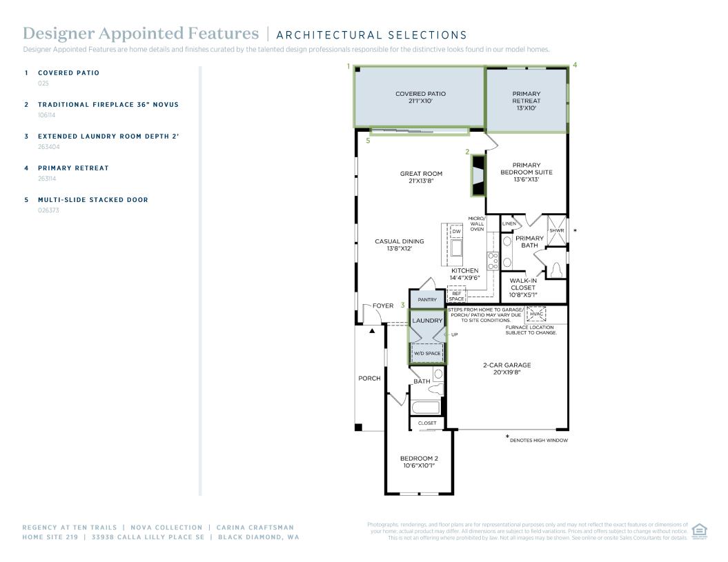 From its welcoming porch to its spacious covered patio, the Carina welcomes you home. The bright foyer of the Carina opens immediately onto the spacious great room and casual dining area overlooking its large covered patio. Complementing the kitchen are a large center island with breakfast bar, and ample wraparound counter. The charming primary bedroom suite features a sizable walk-in closet and serene primary bath with dual-sink vanity, large luxe shower, and private water closet. The secluded secondary bedroom features a roomy closet and shared hall bath. Additional highlights include a convenient workspace off the great room, centrally located laundry, and additional storage.