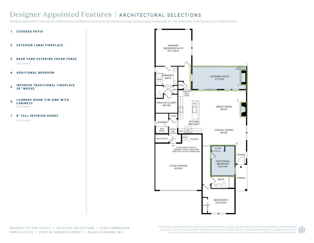 The Lyra strikes the perfect balance with welcoming open areas to entertain and quiet corners to relax. The bright foyer reveals a spacious flex room and views into the expansive great room, casual dining area, and desirable large covered patio. The well-appointed kitchen is complete with a large center island with breakfast bar, ample counter and cabinet space, and sizable pantry. Enhancing the palatial and private primary bedroom suite are a stunning walk-in closet and gorgeous primary bath with dual-sink vanity, large luxe shower, linen storage, and private water closet. The secluded secondary bedroom features a roomy closet and shared hall bath. Additional highlights include a convenient everyday entry, centrally located laundry, and additional storage.