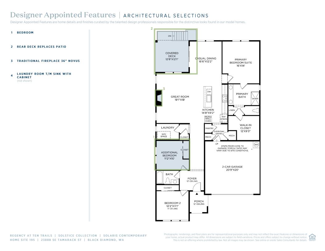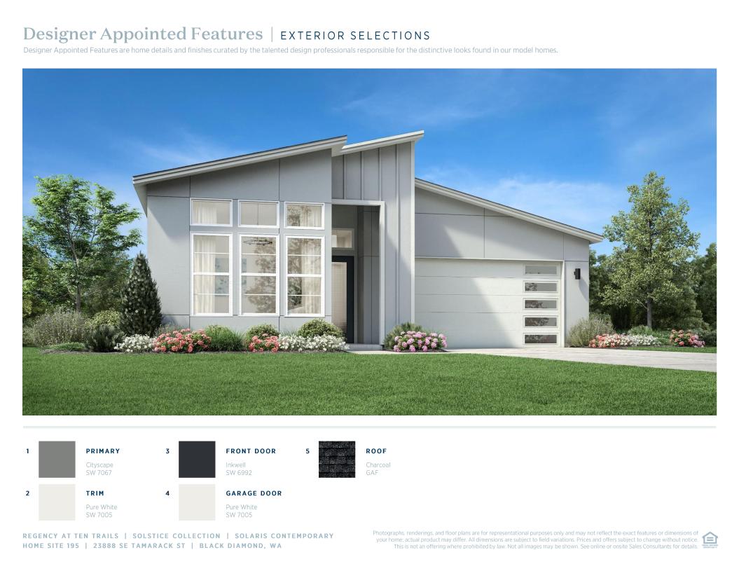The Solaris impresses at every turn, from its stunning primary bedroom suite to its casual dining area. The elegant foyer flows past a bright flex room to reveal the spacious great room, casual dining area, and desirable large covered patio beyond. Enhancing the kitchen are a large center island with breakfast bar, plenty of counter and cabinet space, and ample pantry. The primary bedroom suite is complemented by an expansive walk-in closet and deluxe primary bath with dual-sink vanity, large luxe shower, linen storage, and private water closet. The secondary bedroom features a sizable closet and shared hall bath. Additional highlights include a convenient everyday entry, centrally located laundry, and additional storage.