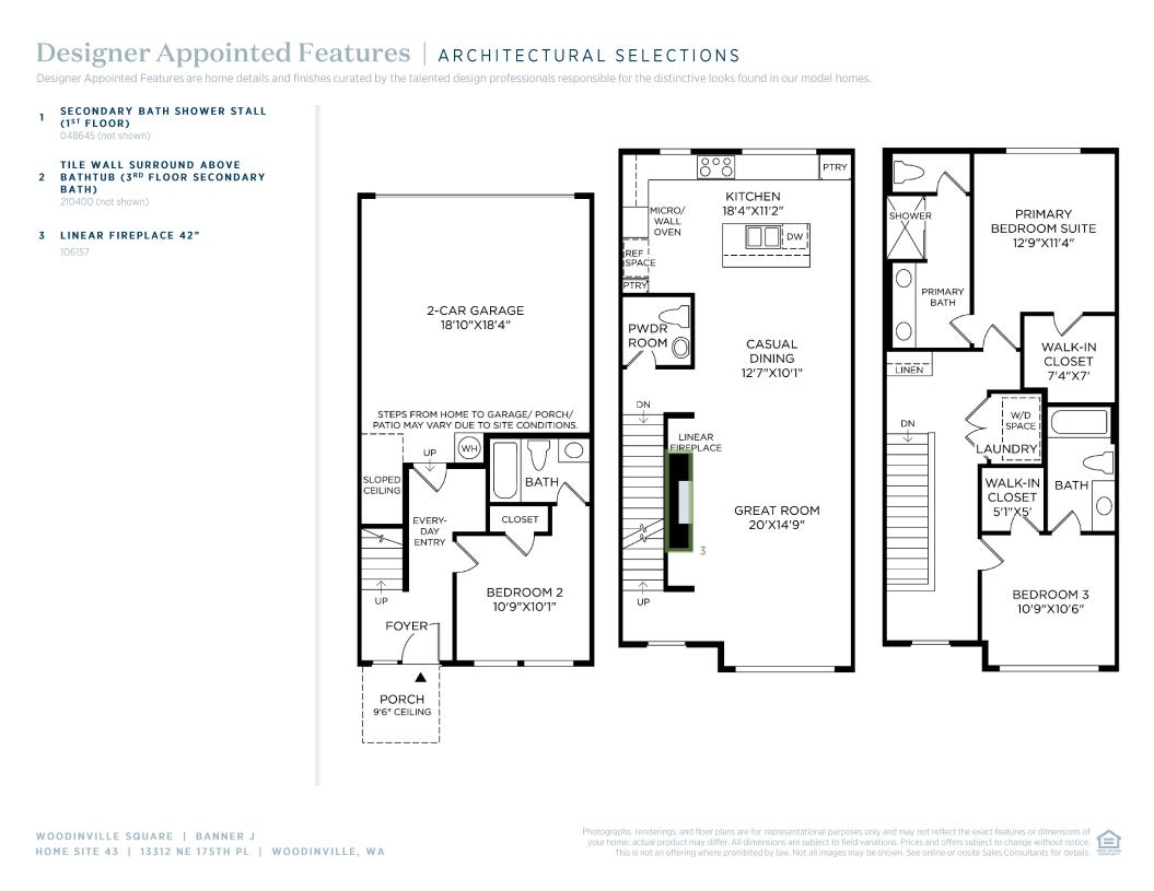 The Banner opens with a welcoming foyer that connects to a secondary bedroom suite and stairs leading up to the main living level. The beautiful great room seamlessly connects to the casual dining area and the well-appointed kitchen featuring an island. Located on the third floor, the charming primary bedroom offers a walk-in closet and a serene bath with a dual-sink vanity, a luxe shower, and a private water closet. A lovely secondary bedroom features a walk-in closet and private bath. Other highlights include an everyday entry with drop zone, a powder room on the second level, convenient bedroom-level laundry, and plentiful storage.