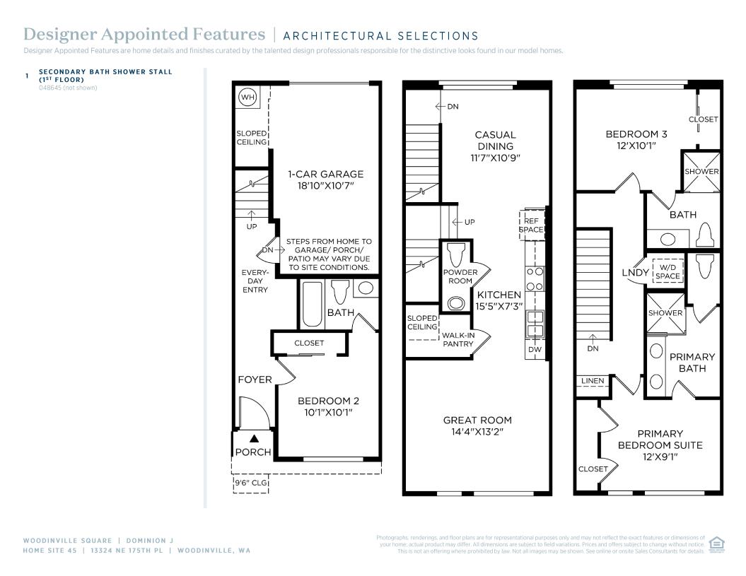 The Dominion offers an idyllic blend of functionality and elegance within its three-level floor plan. The open-concept main living level seamlessly connects the great room and casual dining area to the well-appointed kitchen, enhanced with ample counter and cabinet space as well as a walk-in pantry. Upstairs, the luxurious primary bedroom suite features a generous walk-in closet and a spa-like private bath complete with a dual-sink vanity, luxe shower, and a private water closet. Also on the third floor is a secondary bedroom with a private bath, while another secondary bedroom with a private bath is conveniently located on the first floor off the foyer. Additional features of the home include a convenient everyday entry on the first level, a second-floor powder room, bedroom-level laundry, and plenty of storage throughout.